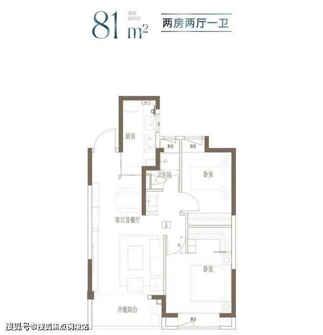 户型特点:小面积,低总价;2房朝南大面宽,舒适生活感受;卧室飘窗设计,释放更多公共空间。