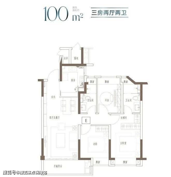 户型特点:3开间朝南,全屋阳光充足;L型厨房转角移门设计,最大化空间视野;四飘窗设计,通透空间享受;动静分区,亲密有度;套房式主卧,容纳私谧生活点滴;