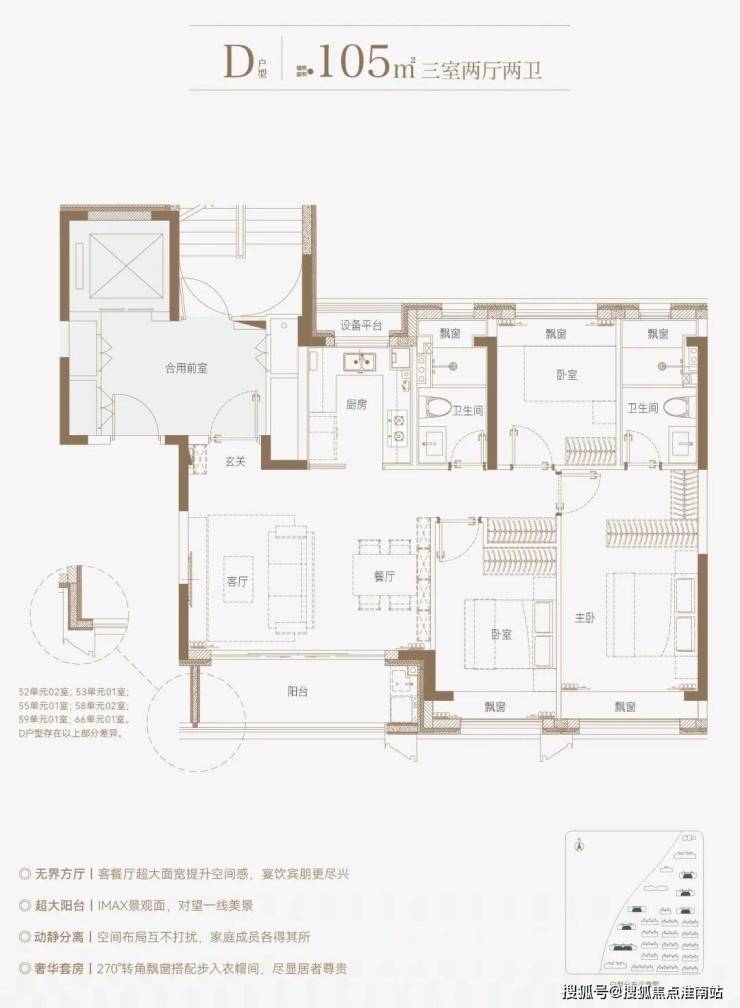边套的餐厅、主卧和次卧,设置有多个270°全景飘窗,室内通透明亮。
