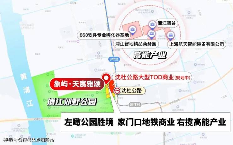象屿浦江镇项目坐落于闵行浦江镇,距离黄浦江约5.6公里。东侧是规划商业用地,未来可能会打造TOD商业综合体,潜力无限。