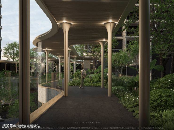 归家风雨连廊:采用当下豪宅新盘才运用的风雨连廊,打造风雨无阻的归家体验的同时,也连接着社区核心景观节点和功能空间,大大增加小区景观的空间体验。