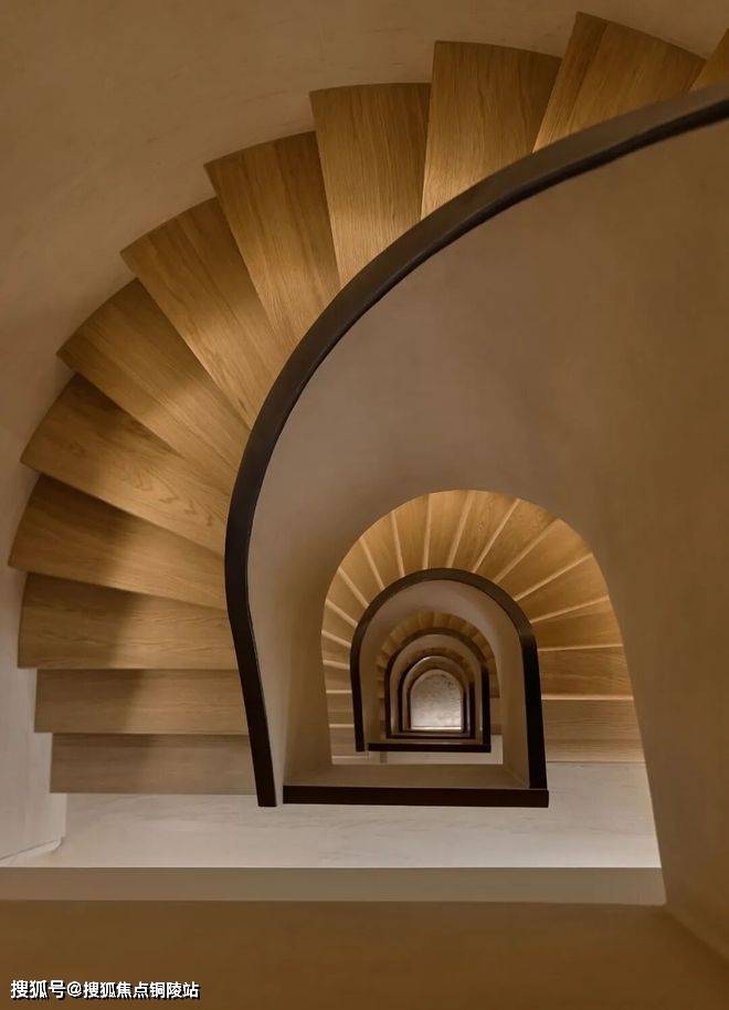 他们在庭院中引入了一条水系,不是平铺在地面上,而是让水流在墙面上垂直流淌。它出现在地下一层的旋梯上,地下二层的庭院中,汇聚到了地下三层的会所。