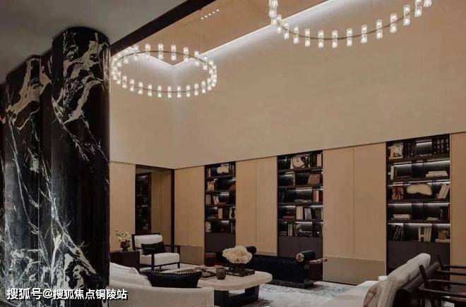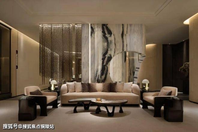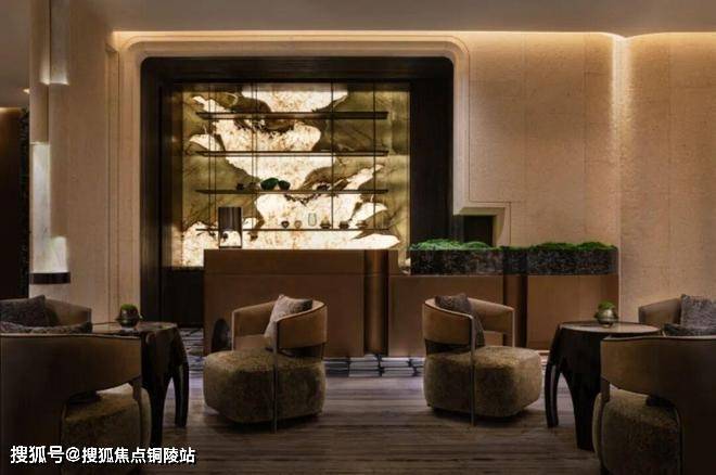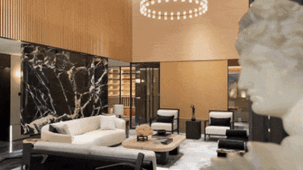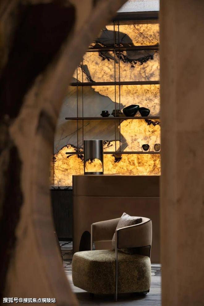 越秀·外滩樾的会所在地下三层。他们在会所中做了造型各异的奢石景墙,用各种隐约可见,来分隔和连接不同的功能空间。