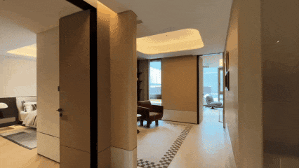 另外,项目的弧形玻璃引天光入画,落地窗将四季裁成框景。一扇窗,一面墙,皆是与世界的温柔对话。此刻,上海不再是远方,而是你窗前的晨昏,院里的四季。