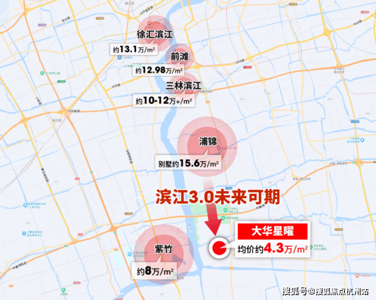 从新房约13万/㎡的徐汇滨江,到新房约13万/㎡的前滩,再到10万/㎡的三林、新房约8万/㎡的吴泾,足以见识到滨江在上海的地位无可撼动。