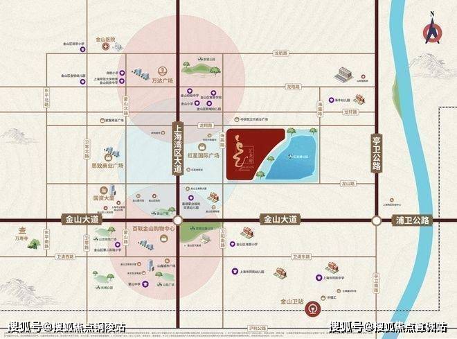 项目周边暂时没有地铁线,距离火车金山卫站约2.8km,往返市区的时间还是在可控范围内;自驾方面,金山大道,上海湾区大道、亭卫公路等主干道环伺,便捷通达。