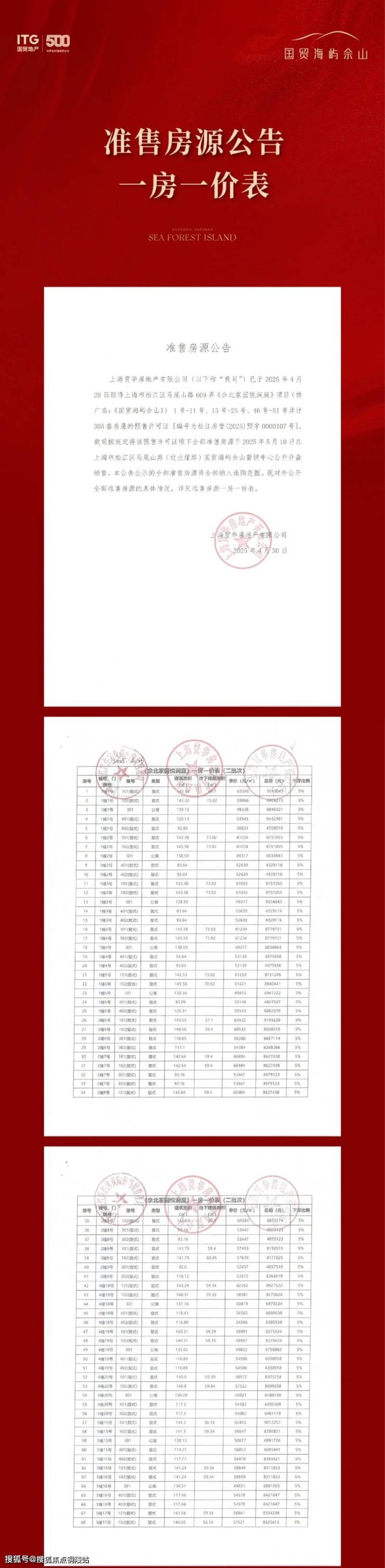国贸海屿佘山一房一价表: