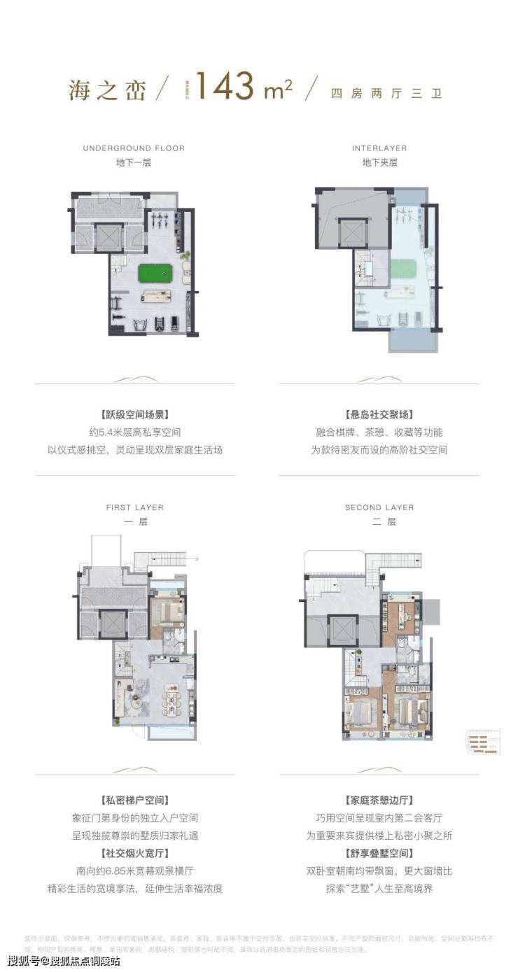 地下一层及夹层空间,可以根据业主需求,打造影音室、健身房、酒窖、棋牌室等各种欢娱空间,为美好生活添加无限可能。