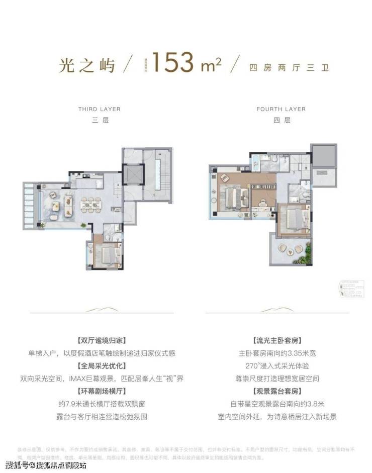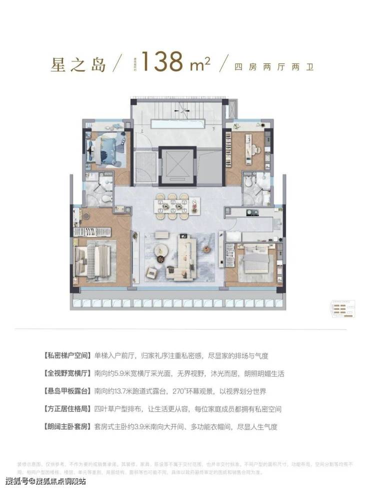 这个四房虽然建面只有138㎡,但因为是5层叠墅的高得房率,以及室内空间的高效利用,其功能和尺度感,给人的感觉十分惊艳。
