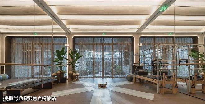 汗水滴落如晨露,呼吸随普拉提的动作起伏,每一次重复都是向前的印记,也是缪斯喜爱的健康生活方式。序厅和健身房内部设计为天花圆形发光膜和弧形艺术玻璃门,在大量拱形元素中点缀部分拼花装饰,让整个空间彰显柔润平和的质感与井井有条的秩序感。