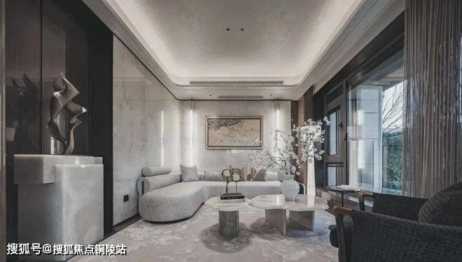 首先是奢石含量极高,从入户处的玲珑玉拼花与透光云石辉映,到翡翠绿奢石墙景、再到 发光云石装饰点亮归家路,石材的典雅贯穿始终。