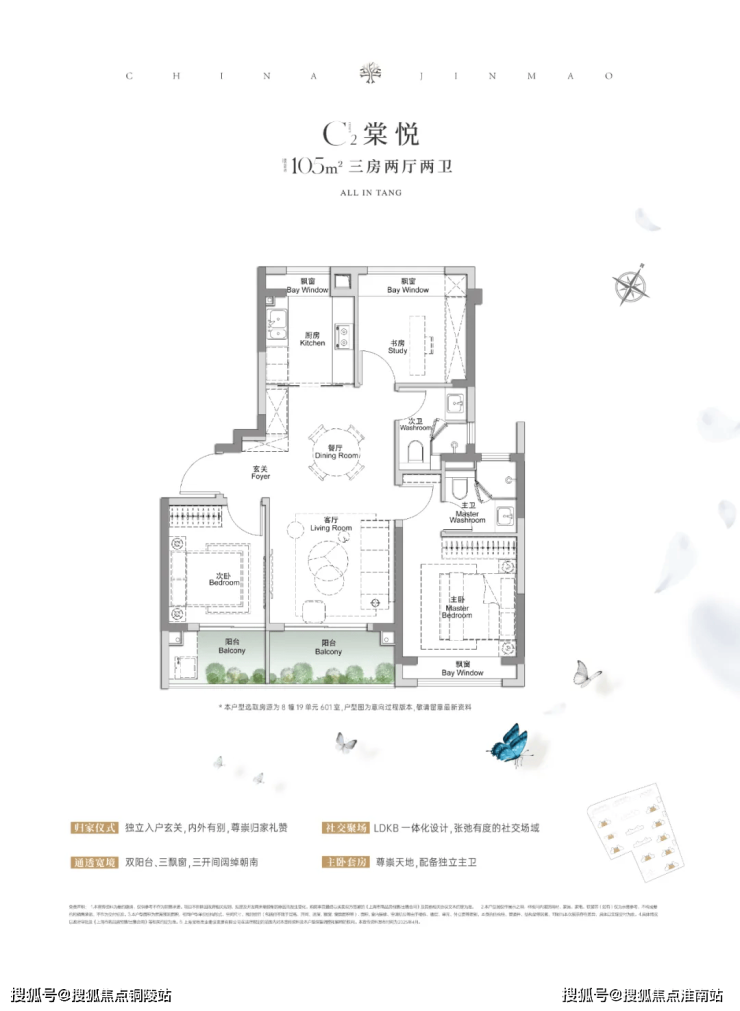 首先,小户型也有大空间,超高附加值增加实得率。即便是最小的建面约85㎡户型,也“挤”出了大空间,堪称小户型的典范。