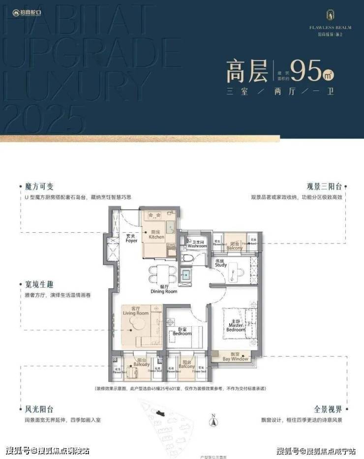 建筑面积约95/105㎡三房,进阶改善绝版“三阳台”户型