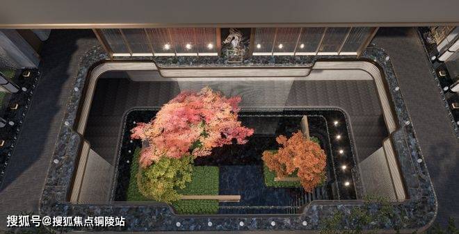 项目利用下沉式景观庭院,结合艺术花园、摩登水景等,打造了一座高端的下沉式会所,规划设有泳池、健身房、行政酒廊等场景。