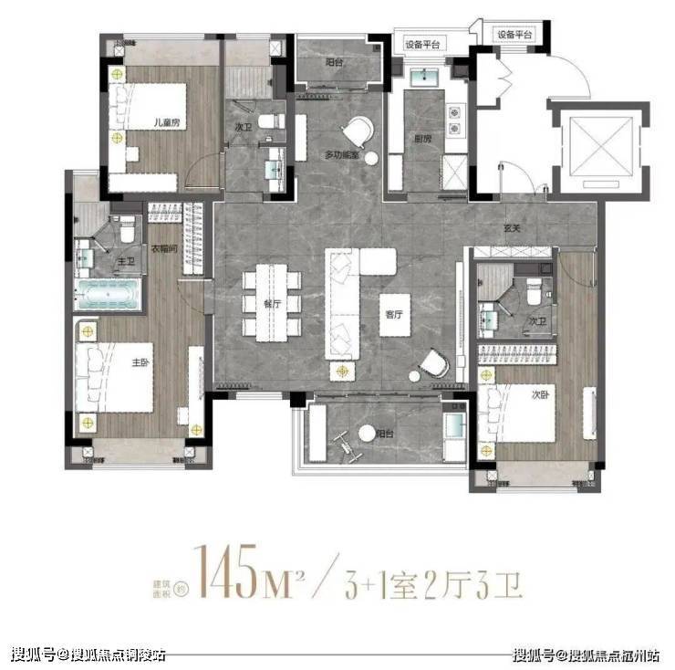 建面约145m²户型图