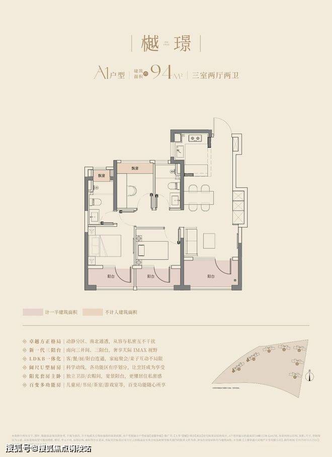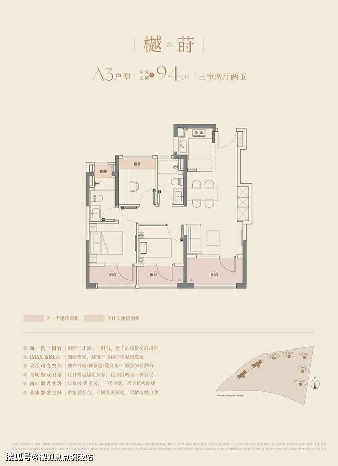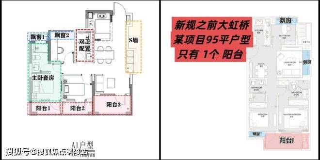 在这里,高层建面约94㎡户型做到了惊人的三阳台,对比同板块内以前的标杆小区,同面积段户型只做了1个阳台。不仅数量发生质的变化,实得面积也大大增加。