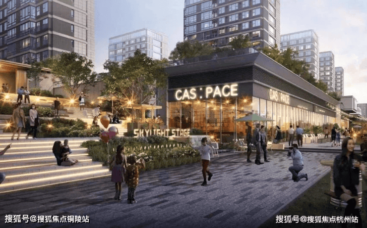 约2万平方米的热闹街区以两大十字轴线布局,汇聚文体、健身、儿童托管、共享食堂和康养等全龄服务,归家漫步时能享受风景、文化与活力交融的消费体验。