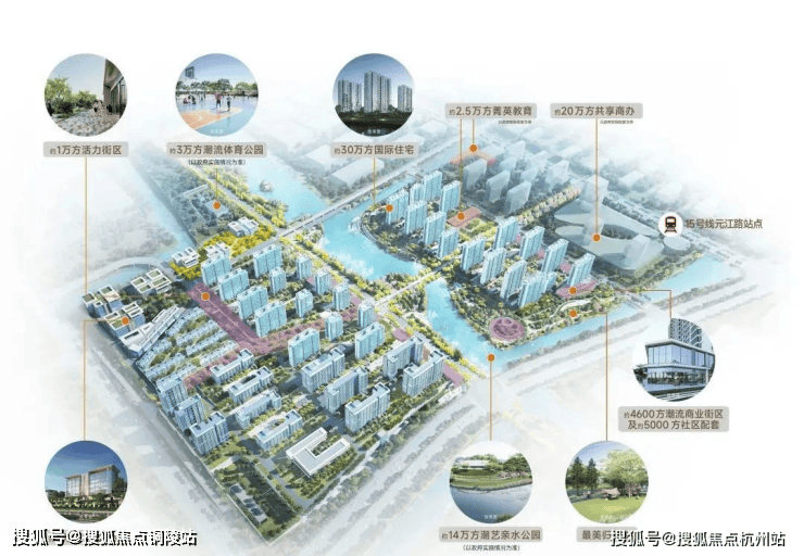 该项目将公园与天然水系整合到社区中,通过一个约3万方的运动竞技公园和一个约14万方的滨水艺术潮流公园,结合城市绿地,共同构建约20万方的滨水双园,最终在自然生态基础上打造出超级TOD生活场域。