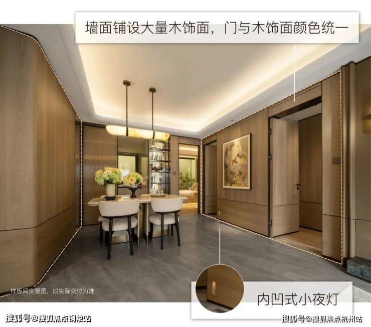 不同于市面上门是门,框是框,墙是墙,看房时“五颜六色”。江湾金茂府室内采用一体化设计语言,实现空间、色彩与材质的协调统一。