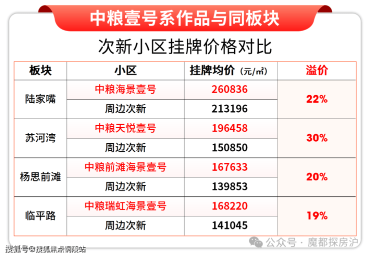 再比如瑞虹海景壹号,北外滩早期作品,四开四罄热销185亿,当时新房11万多/㎡,现在瑞虹新房16.6万/㎡,中粮的二手房更是稳定在17万元/㎡左右。