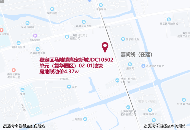 「众禾嘉苑」即2022年二批次土拍地块嘉定区马陆镇嘉定新城JDC10502单元(复华园区)02-01地块,项目由大众以12.4亿元总价竞得,楼板价22364元/㎡,溢价率9.09%。房地联动价4.37万/㎡。