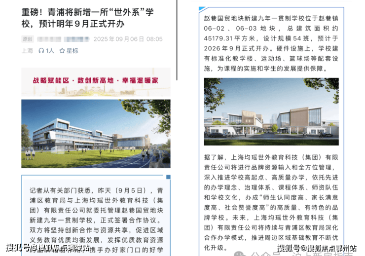 9月5日“世外”正式官宣落定赵巷,这所世外托管的公办九年制学校为国贸代建学校,与项目仅一路之隔,未来大概率对口。 (期房不承诺学区,学区划分以教育局公布为准)。