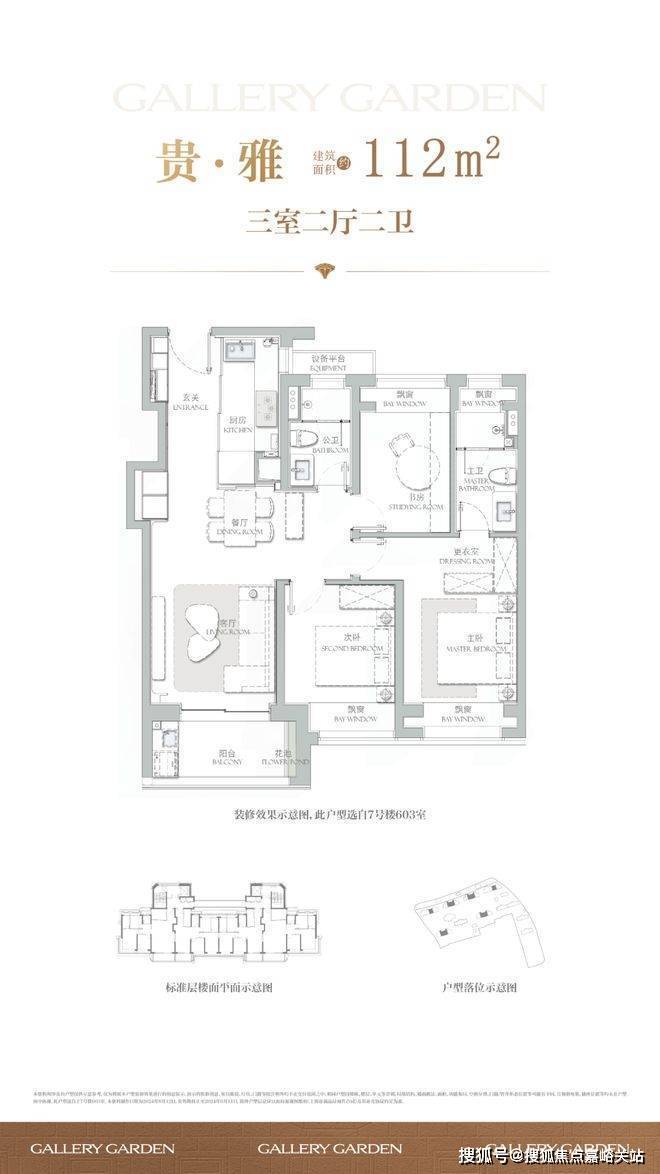 项目舍弃了传统逼仄的百平三房,将最小面积提升到了建面约112㎡,而这12个平方的提升,让整体户型的空间尺度感达到了新的高度。