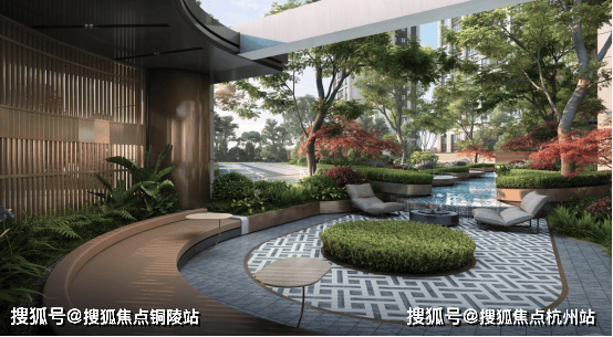 社区中央景观位的林下会客厅,糅合精工材质和自然光影,邻里社交假日休憩,让人在此流连时光。
