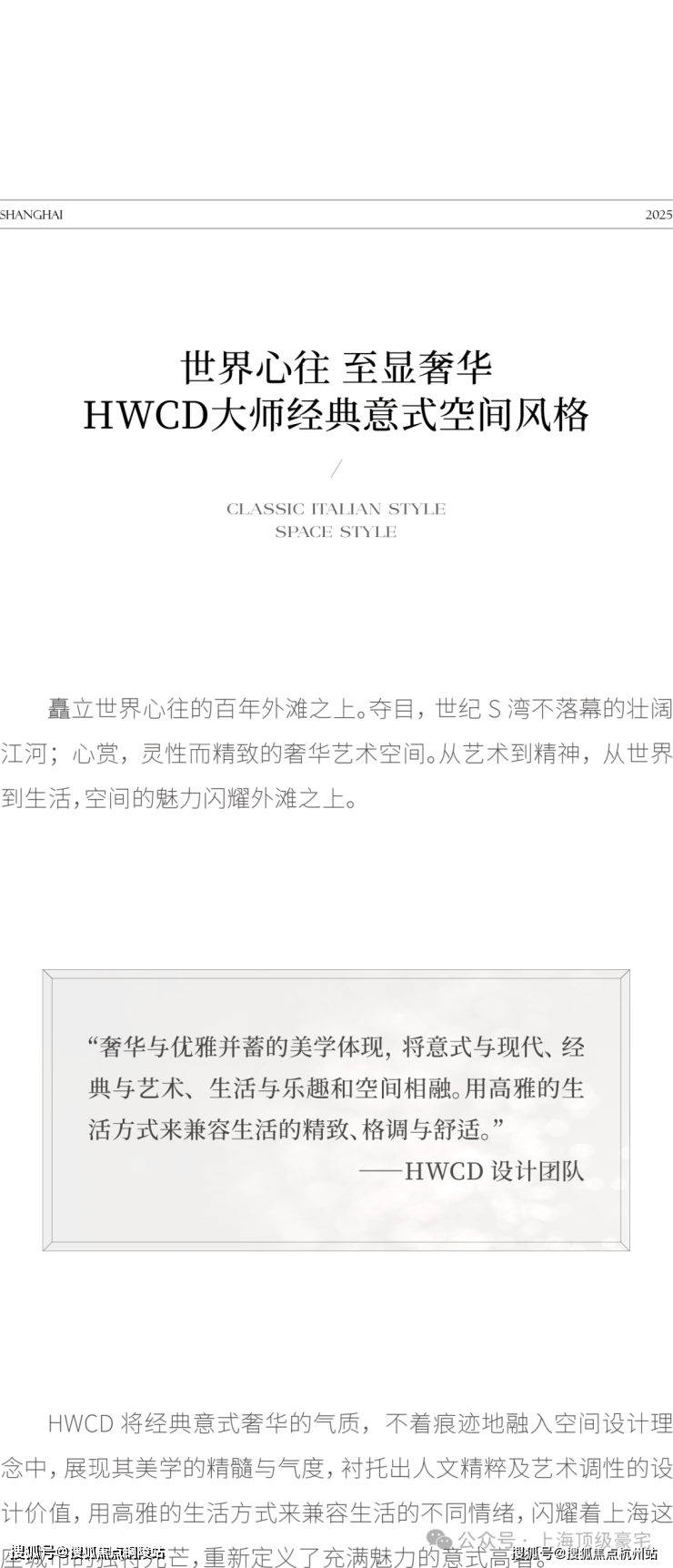住宅部分全部大平层(复式)设计,单套面积约370-1500㎡,全部精装交付。