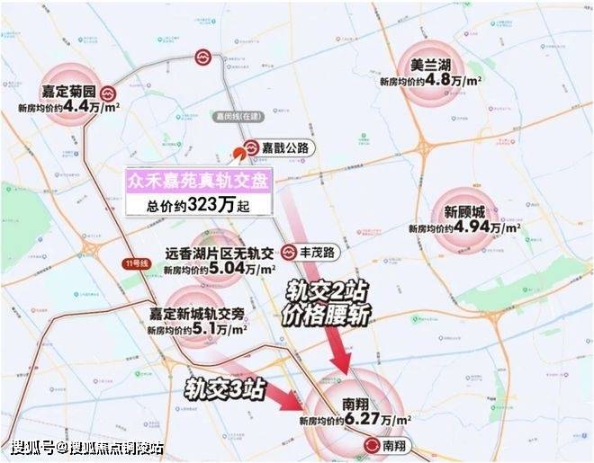 往前两站的南翔,新房均价站上6万+,两站地铁,价差约1.7万/平,同样买百平米三房,能省下将近二百万左右!性价比一目了然,