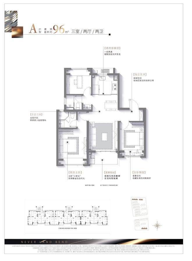 建面约:96㎡ 三房两厅两卫(高层)
