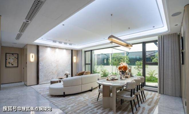 同时,悬浮于十米之上的空中浮岛会所也已实景呈现,涵盖空中悬浮泳池、健身房、瑜伽房、商务会客私宴厅、社交酒廊等功能;与窗外绿意盎然的屋顶花园相互映衬,营造出舒适惬意的休闲氛围。