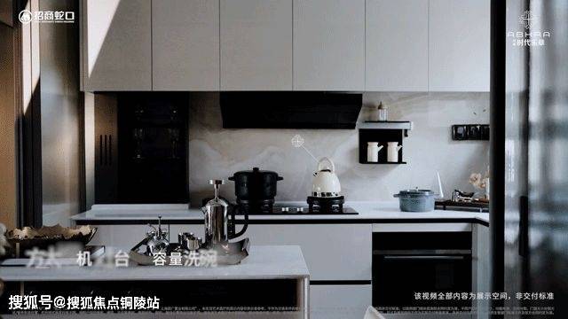 招商时代乐章艺术化的再造传统餐厨空间,可开可合的岛台设计,结合艺术玻璃移门,在提升空间灵动性的同时,也激发出餐厨空间生活的多样性。