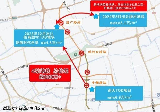 2024年一批次土拍中,顾村板块内新地块联动价格为5.1万/㎡,上调了3000元/㎡!而该地块距离地铁商业均在3KM左右!