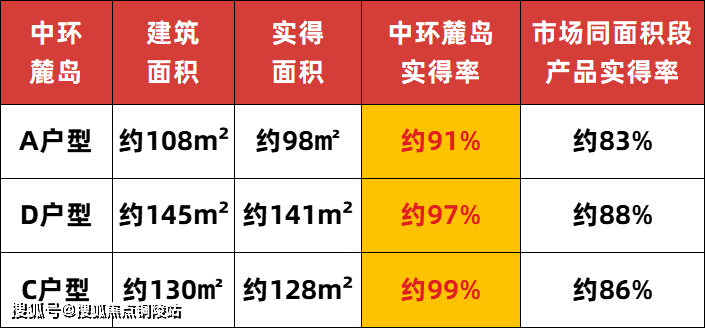 中环麓岛主力户型建面约108-145㎡3-4房, 全是三阳台户型。根据独家君的模拟测试,我们得出了项目的实际使用面积: