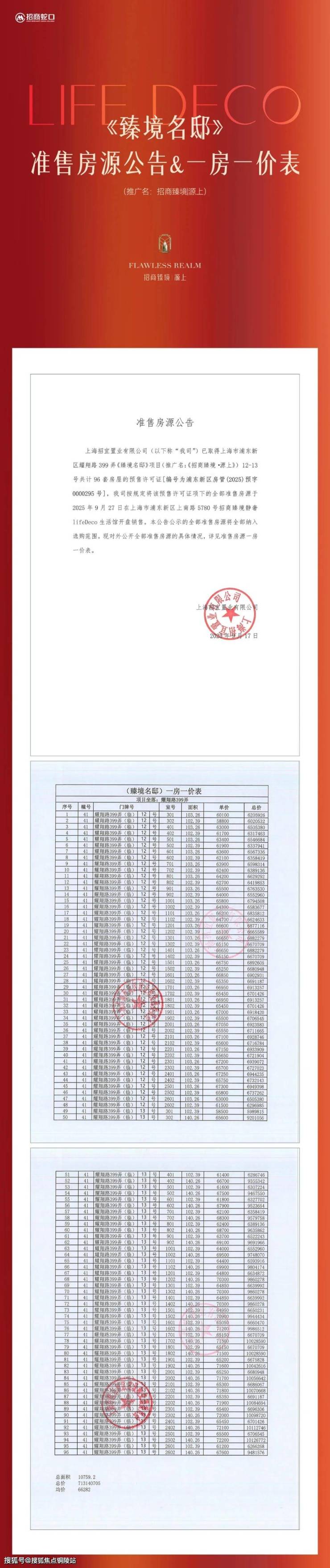 好消息,浦东三林 总价581万起 三阳台王炸产品【招商臻境】加推建面约95-150㎡公寓&叠墅!均价69657元/㎡!一房一价首发!