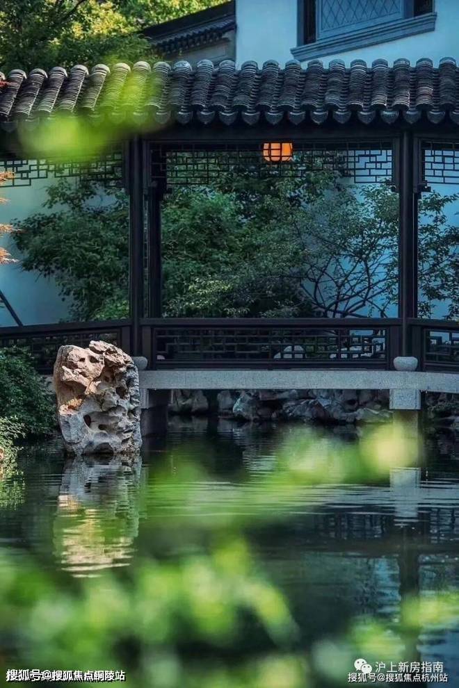 与全国在售中式作品相比,上海桃花源中轴五进制中轴园林,完整性、丰富度堪称全国之最。金瑞园坐北面南,由正南入园,中轴园林不仅设对景峰石、蜿蜒水街、太湖山石、亭台轩廊等景观节点,还以宽广山石庭园和辽阔水景,呈现潆回环抱之势,意趣无穷。另外,山林连绵、亭廊曲折,江南的温婉、隽永,尽藏其中。