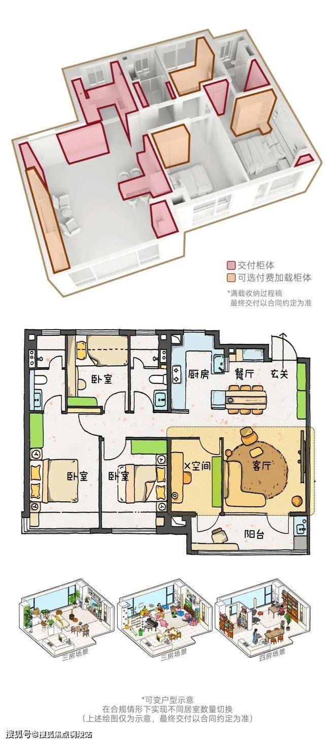 可变户型:以全户型全周期可变满足长期居住需求,与家庭共生长