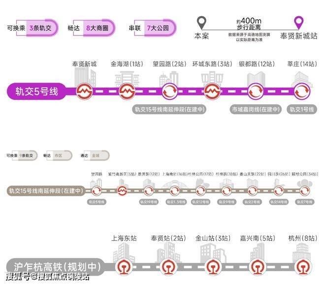 轨交网络:5号线、15号线南延伸段(在建中)、市域嘉闵线南延伸段(规划中)、沪乍杭高铁(规划中)及南枫线(在建中)