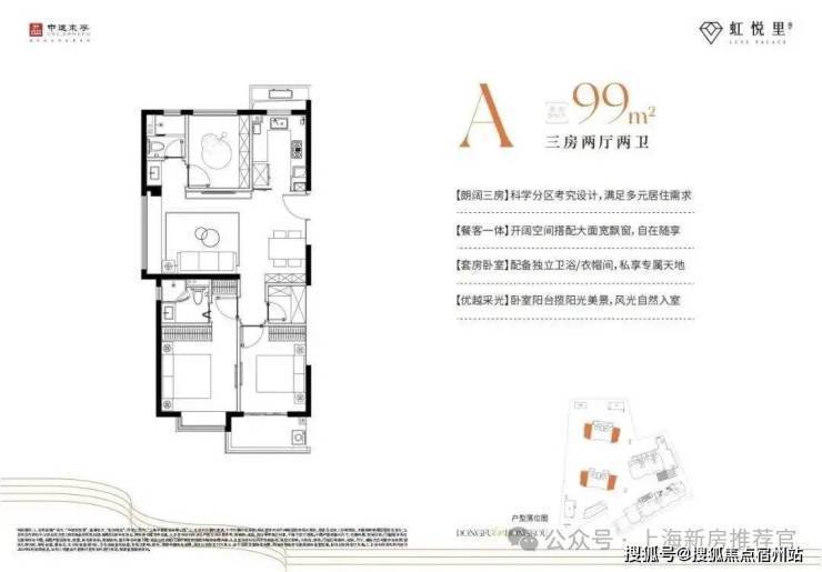 产品方面,中建虹悦里整盘248套房源一次性入市,从建面约79㎡精致2房,到建面约91-99㎡轻奢3房,多元户型总有一个适合你.