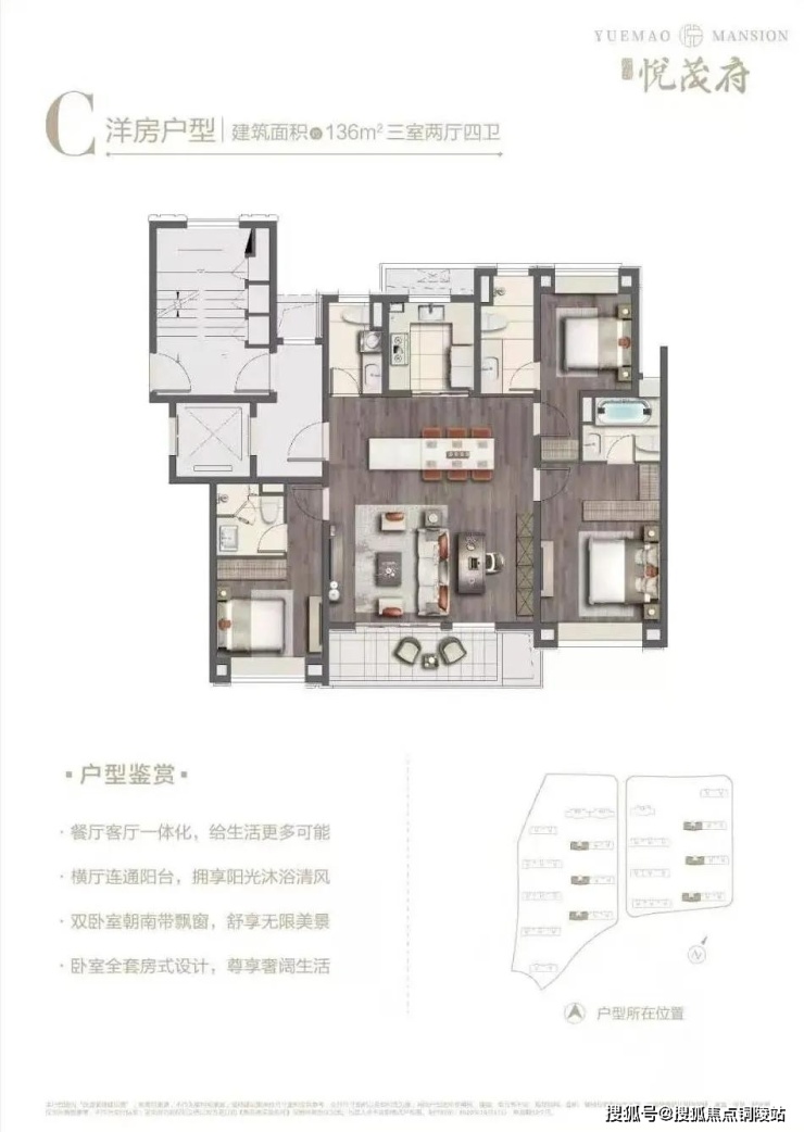 路劲·悦茂府共由15幢洋房,2幢高层,2幢高档酒店组成。项目整体分三批次推出,房源共计1060套。