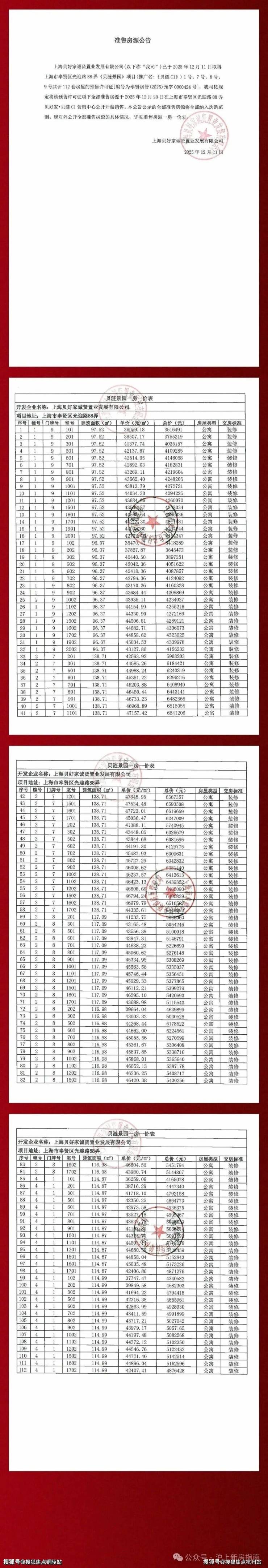 一房一价表
