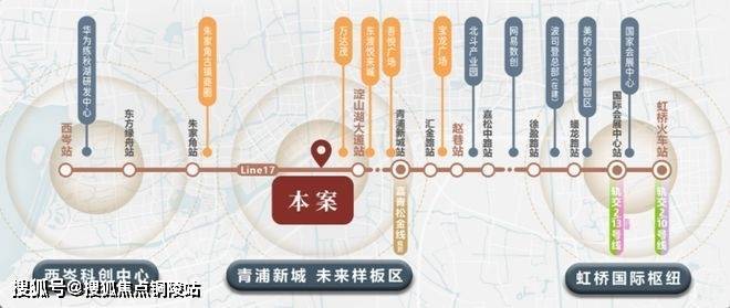 项目直线距离17号线淀山湖大道站约800米,3站华为、4站市西软件园、8站虹桥商务区,直接锁定三大高能级产业价值,串联起周边的产业菁英!