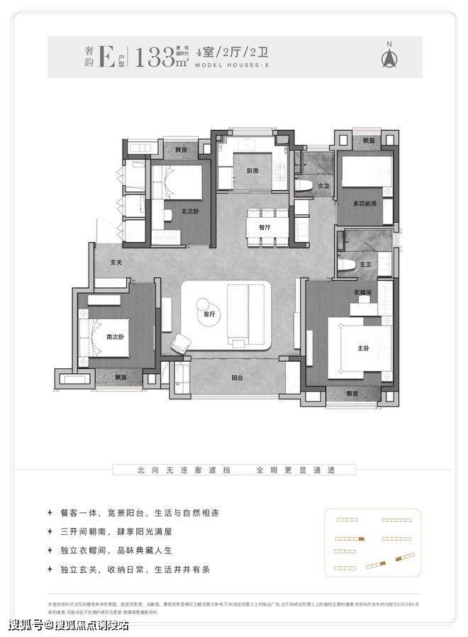 另外这个户型能更好实现南北通透,客厅-餐厅-阳台-厨房一线连通。