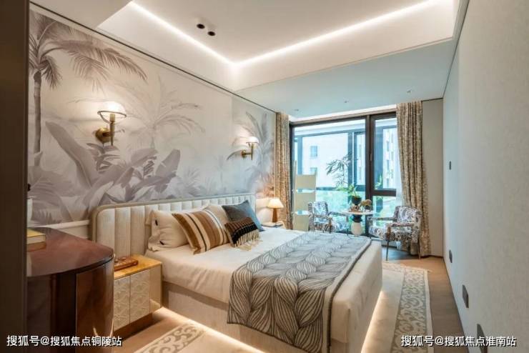 豪华的套房设计,北侧卫浴飘窗+南向床边双飘窗的设计,更是把这个空间的视野和收纳空间延展开来,尺度感真的很惊人。