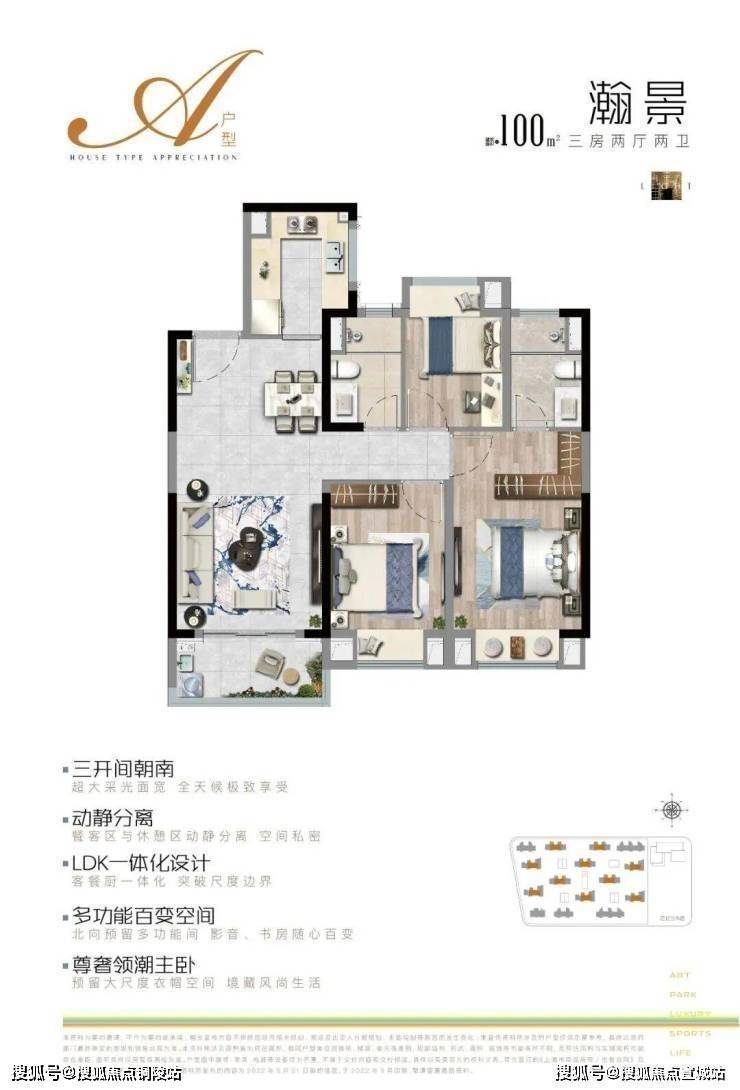 建面约100㎡ 三房两厅两卫——刚需首选,全生命周期适配