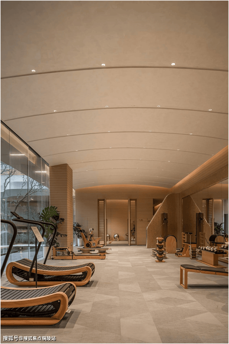 自然贯穿了整个社区公区的设计语言,整体约1200㎡立体会所+约1700㎡主题架空层,配备了私宴厅、瑜伽室、棋牌室等休闲空间。