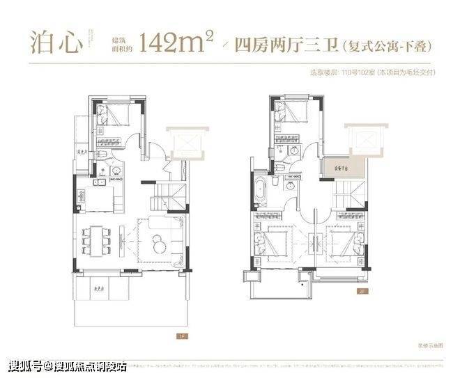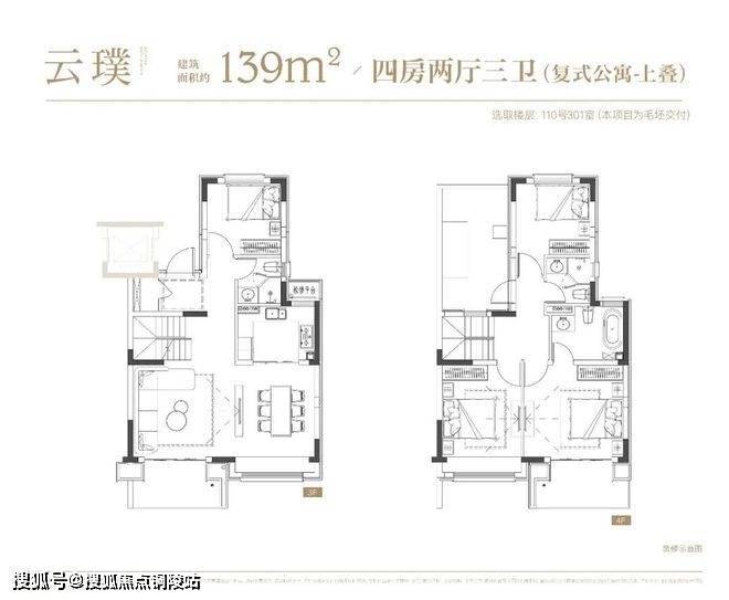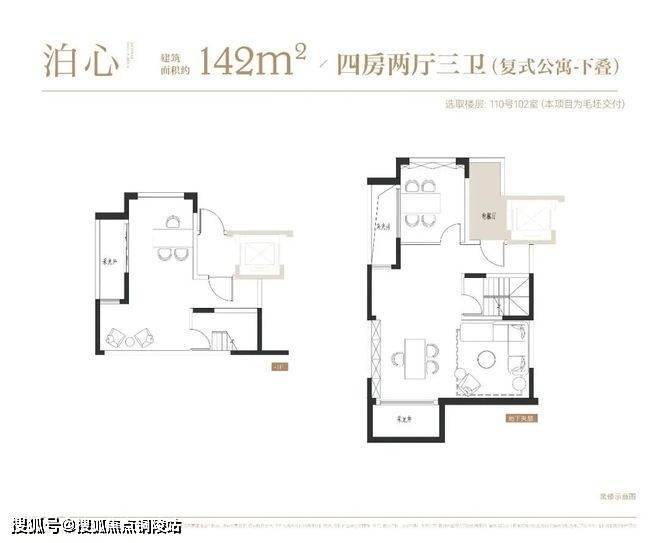 项目叠墅户型有建面约142㎡下叠,建面约139㎡上叠。