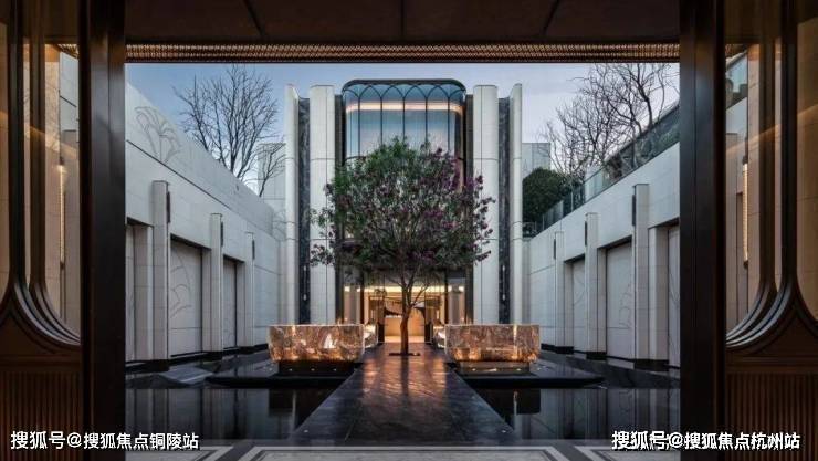 下沉式庭院,通过垂直景墙、悬浮观景台与叠水景观的立体交织,实现移步换景的视觉效果,也与会所空间形成无界交互。