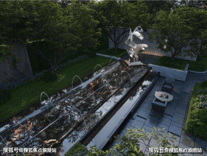 前场花园以兰特庄园为设计灵感,明确的中央轴线贯穿,中心喷泉顶端放置了应晶晶的山海金阙,以秩序中的自然理念通过几何布局、水景艺术和人文符号加功能美学与哲学融为一体。